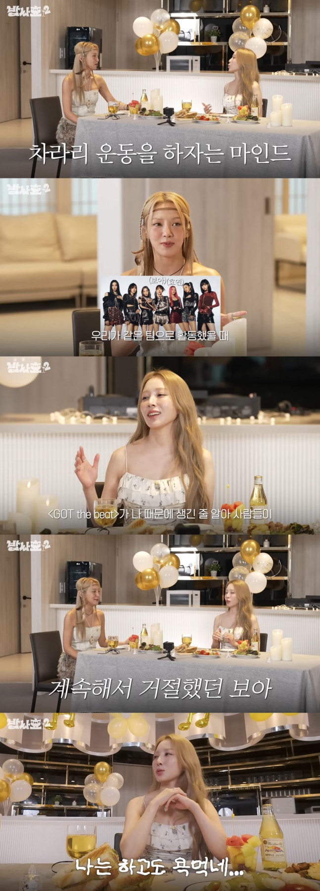효연은 보아와 갓 더 비트로 활동할 때 많이 배웠다면서 "저는 이 정도 했으면 됐다는 생각으로 연습하고 나중에 후회하는 편이다. 근데 언니는 될 때까지 동선을 체크하더라"라고 말했다. 갓 더 비트(보아, 태연, 효연, 슬기, 웬디, 카리나, 윈터)는 2022년 결성돼 'Step Back', 'Stamp On It' 등을 발표한 바 있다.보아는 "근데 내가 안무를 제일 많이 틀렸다. 그룹 활동을 처음 해봐서 동선 이동이 낯설었다"라며 남모를 고충을 전했다. 이어 "사람들이 오해를 하더라. 갓 더 비트가 나 때문에 생긴 줄 알던데 정말 아니다. 저도 하고 싶지 않다고 말하며 계속 도망 다녔다. '제가 낄 자리가 아니다. 못하겠다'라고 (회사 측에) 메시지까지 보냈다. 근데 악플이 많아서, 난 하고도 욕 먹는다는 생각에 속상했다"라고 털어놨고, 효연은 "마음이 많이 아팠겠다"라며 보아를 위로했다.