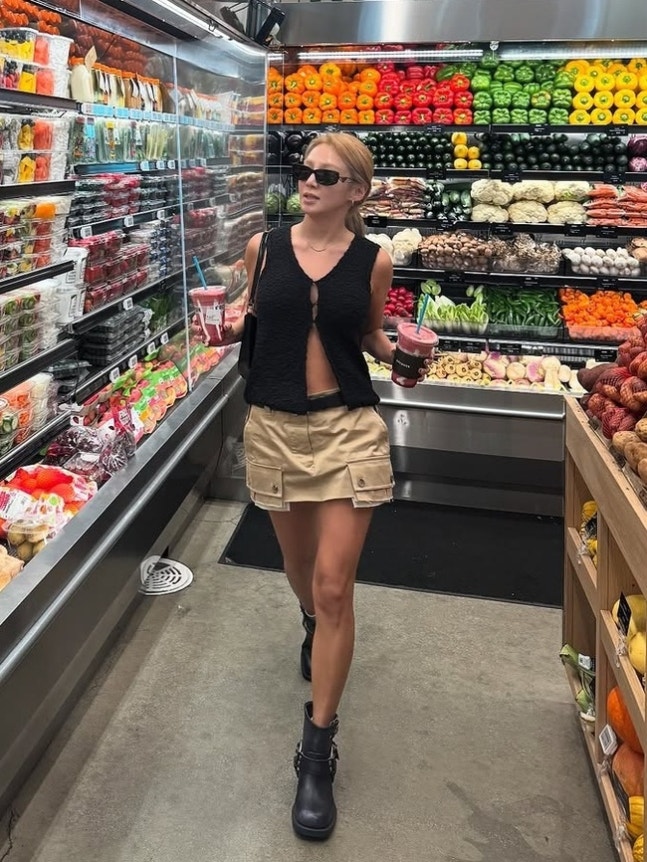 효연 소셜네트워크서비스 계정사진 속엔 미국 LA에서 여유로운 시간을 보내는 효연의 모습이 담겨 있다. 얼굴도 안 가리고 자유롭게 LA 거리를 거니는 효연은 끈 3개로 앞을 아슬아슬하게 여민 과감한 패션을 선보인다. 군살 하나 없는 납작배와 태닝 된 구릿빛 피부가 건강미와 섹시한 분위기를 자아낸다.