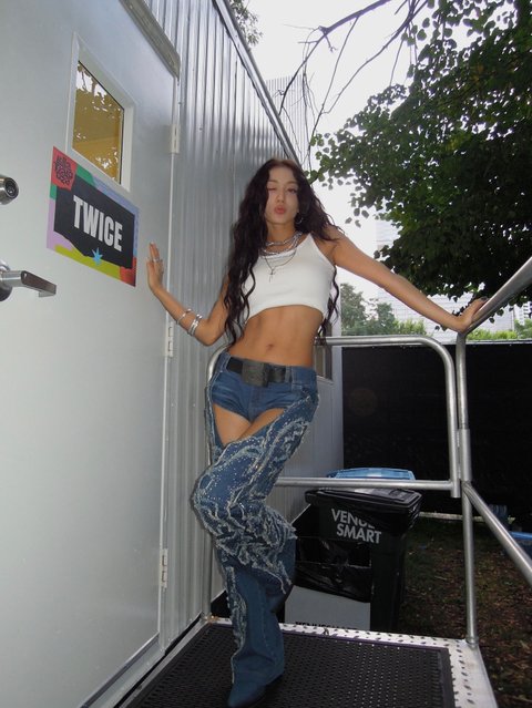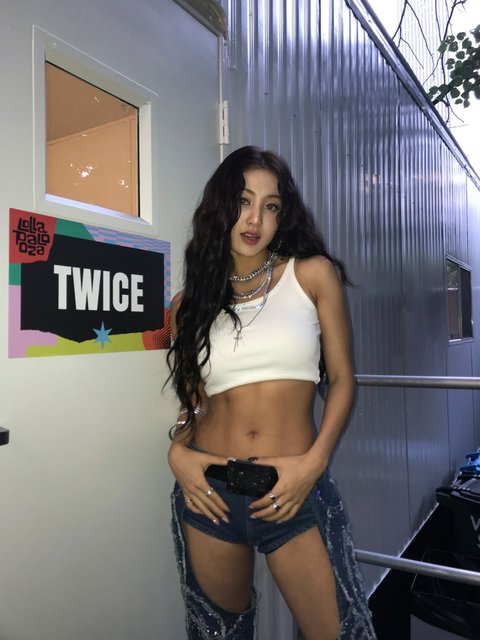 콘서트에서 입었던 흰색 짧은 크롭나시에 짧은 청 패션인데....