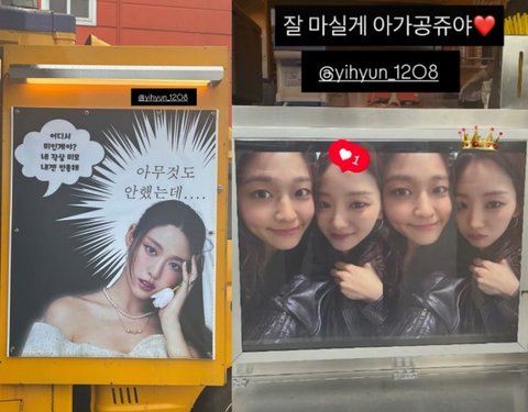 공개된 사진 속에는 배우 조이현이 설현의 드라마 촬영장으로 보낸 커피차가 담겼다. 해당 커피차에는 설현의 얼굴과 함께 '어디서 미인계야? 네 작살 미모 내겐 안 통해', '그렇다. 나는 얼굴에 약하다'라는 멘트가 적혀있어 눈길을 끈다.