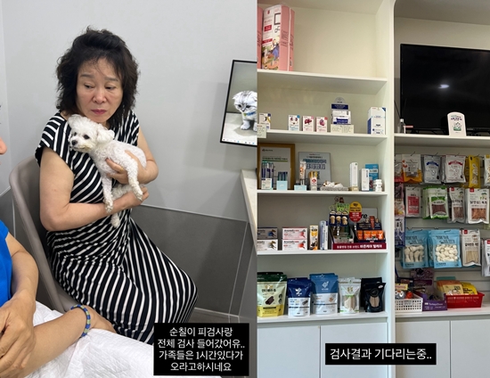 날이 밝자 미자는 가족들과 함께 동물병원을 찾은 모습이다. 그는 "순칠이 피검사랑 전체 검사 들어갔어요. 가족들은 1시간 있다고 오라고 하시네요"라고 알렸다.
