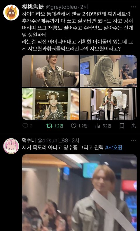 그건 바로 wayV 샤오쥔 본인 생일 기념으로 하이디라오 대관해서 팬 240명 불러다가 훠궈 쐈다고함 체크카드로 1960만원 긁었대ㄷㄷㄷ 중남업중남업 이런 아이돌 많아졋으면