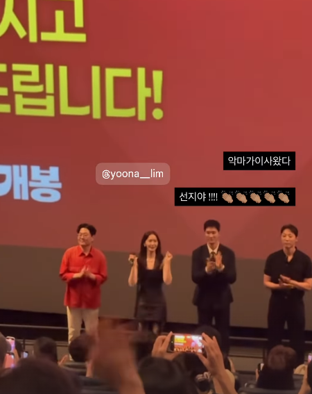 수영은 "역시 대한민국 no.1 이삿짐 '센터' 임윤아 익스프레스. 코미디와 감동까지 견인한다. 올여름 극장가는 임윤아가 책임진다", "열심히 했어 윤아야" 등 애정 가득한 멘트로 임윤아를 응원했다.