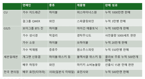 CU 피셜 역대 CU 출시 주류 상품 최고 히트 상품
