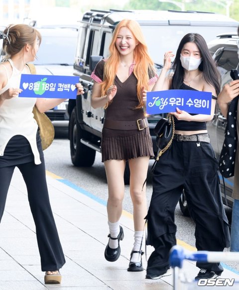 레드벨벳 슬기, 조이, 아이린이 출국장으로 향하며 인사하고 있다. 2025.08.08 /sunday@osen.co.kr