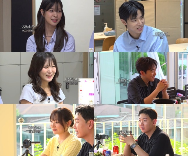 이어 '사옥미팅'에 참가하는 출연진들의 정체가 공개됐다. '에그' 소속에서는 이재서(3년 차)-이윤경(5년 차)-유혜정(1년 차) PD가, '테오' 소속에서는 김준기(2년 차), 이요한(6년 차), 안건우(6년 차) PD가 참가해 시선을 모았다.