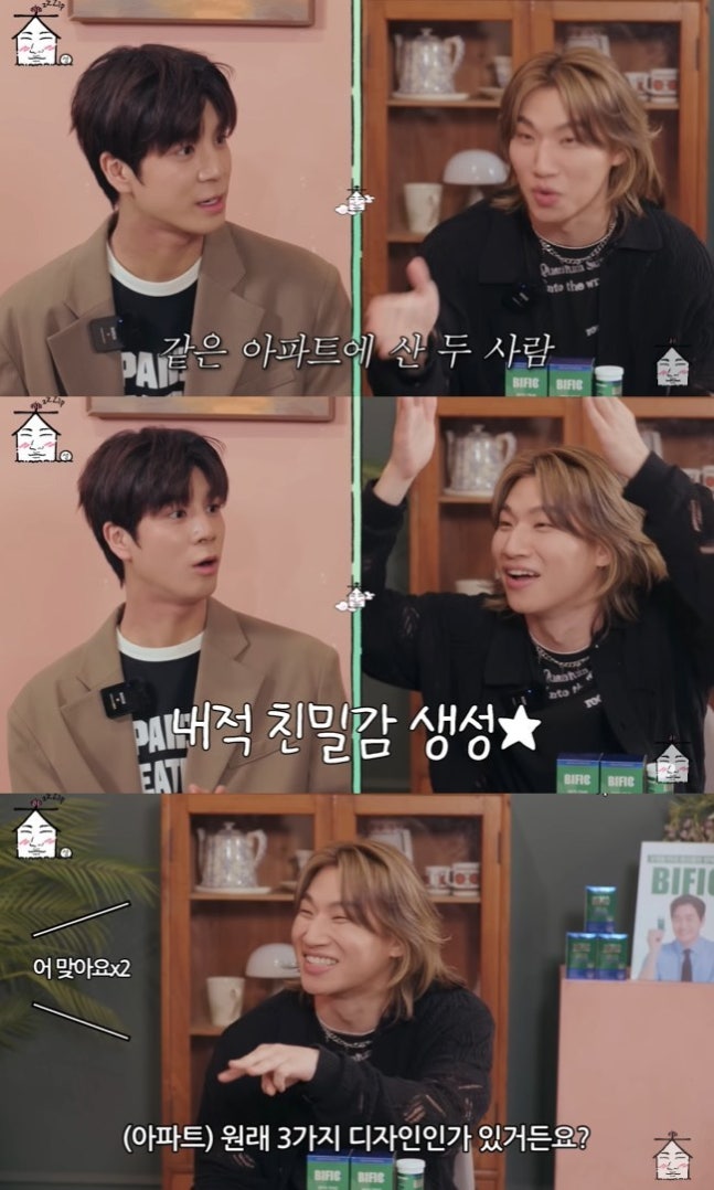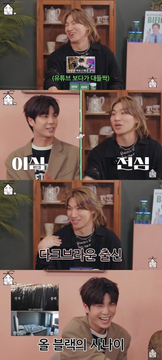 정동원이 “거기 사셨구나. 뭔가 끌리더라”고 말하자, 대성은 “거기가 제일 낫다. 그리고 톤도 비슷하다. 난 집이 다크 브라운이었다. 여기(정동원)는 어둠의 자식. 완전히 다크다. 동질감이 느껴지더라”고 어두운 집 인테리어에도 공통점을 발견했다.