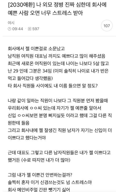사실 나도 고딩때 내가 제일 예뻐야한다고 생각한적 있어서 ㅈㄴ 거울치료 됨 난 숨겼다고 생각했는데 다 티 났겠지…. 그래두 지금은 다 고쳤음 아마두