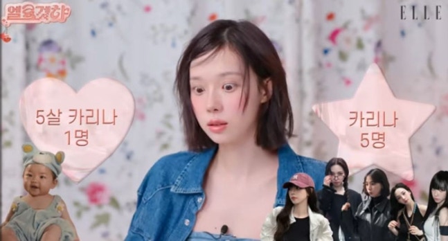 이어 밸런스 게임이 펼쳐진 가운데 “5살 카리나 1명 VS 카리나 5명”질문에 “카리나 5명”을 선택했다. 윈터는 “카리나 언니가 애기 때 이야기 해줬는데 완전 금쪽이더라. 친척 중에서도 동생이 없고 제가 막내라서 애기들을 너무너무 좋아하는데 잘 다가가지 못한다. 그래서 지민 언니 다섯 명을 선택했다”라고 밝혔다.