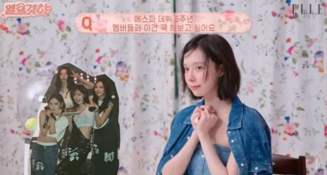 “에스파 데뷔 5주년, 멤버들과 이건 꼭 해보고 싶은 것은?”이라는 질문에 윈터는 “여행을 해보고 싶다. 지금 카리나 언니와는 8~9년 이렇게 됐는데 여행을 한 번도 못 가봤다. 저희가 항상 휴일만 되면 일단 쉬어야 하니까 뭔가 멤버들과 그런 콘텐츠나 일이 아니고 진짜 그냥 저희끼리 놀아보고 싶다. 진짜 재밌을 텐데 뭔가 기회가 되면 꼭 한번 여행을 가보고 싶다”라고 털어놨다.