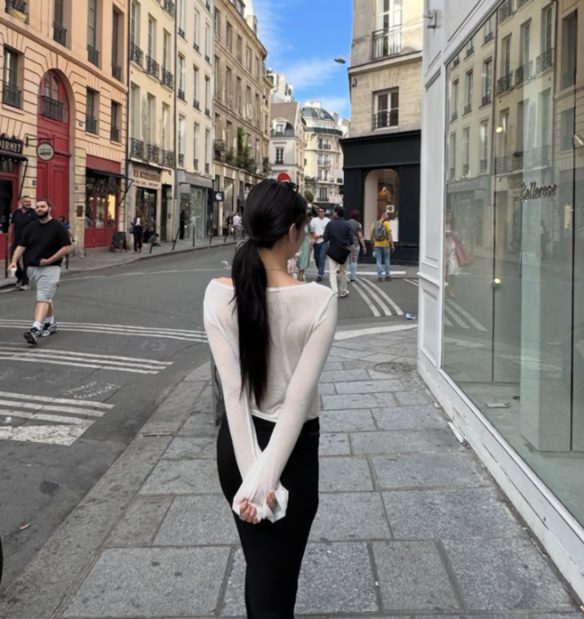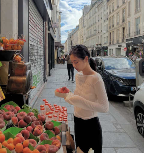 (MHN 오세나 인턴기자) 블랙핑크 제니가 프랑스 파리에서 청순한 매력을 가득 담은 일상룩을 선보였다.