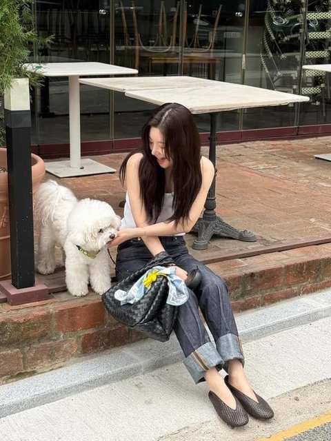 정채연 소셜미디어공개된 사진 속 정채연은 반려견과 여유로운 시간을 보내고 있다.