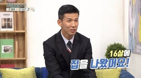 션은 '주변에서 제일 많이 듣는 질문이 있다. '션은 원래 부자야? 무슨 돈이 많아 매일 기부해?'라는 거다'라는 주영훈의 말에 "나는 중산층에서 자랐고 16세에 집 나왔다. 처음에는 가출이었지만 이틀 후에 독립이라고 말을 바꿔 그때부터 독립을 시작했다"며 "이후 부모님의 도움을 받지 않고 살았다. 부모님에게 도움을 받은 건 16세까지였다"고 말했다.
