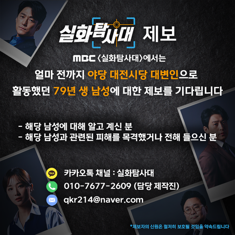 MBC <실화탐사대>에서는 얼마 전까지 야당 대전시당 대변인으로 활동했던 79년 생 남성에 대한 제보를 기다립니다