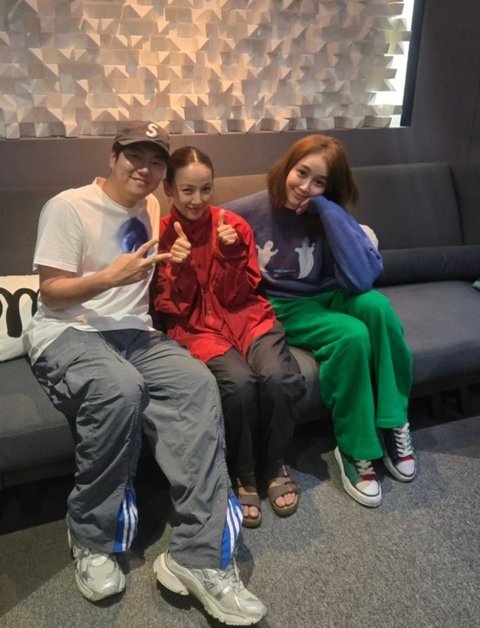 공개된 사진 속 이효리와 옥주현은 앨범 녹음을 위해 녹음실을 찾은 모습이다. 두 사람은 소파에 나란히 앉아 환한 미소를 지으며 카메라를 향해 포즈를 취하고 있다.