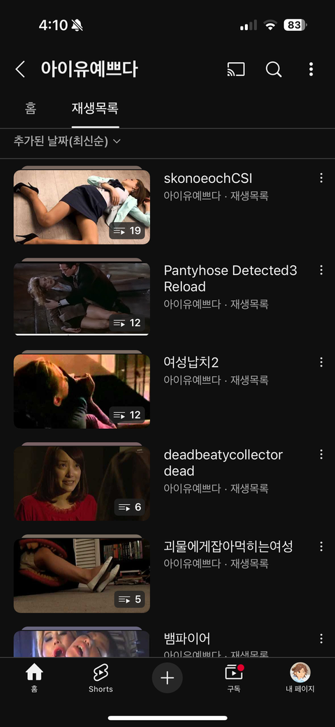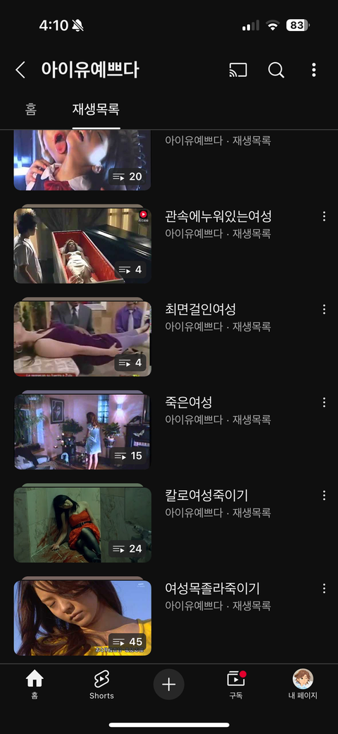 아니 칼에 찔리면 어떤 느낌일까? 영상 검색해서 보려했는데 칼에찔리는여자라는 재생목록 있길래 채널 들어가서 보니까 저ㅈㄹ돼있음 ㅅㅂ 또라이아님?