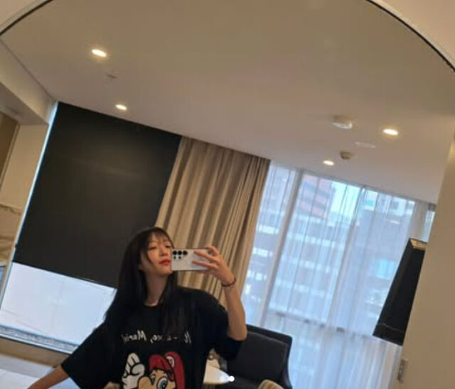 쯔양./소셜미디어사진 속 쯔양은 브이 포즈를 취하며 셀카를 찍는 모습이다.