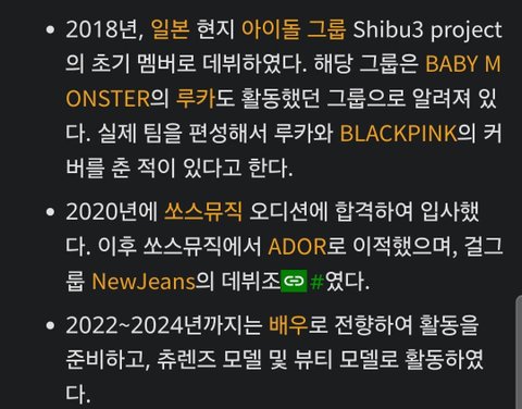얘만 그런 것도 아니고 걍 연예계 자체가 이렇게 돌아감 르세라핌 카즈하 영입 전에 연습하던 애도 직전에 짤렸고 심지어 그거 지들이 방송에 내보냄 트레이니에이인가 걔네도 브이로그찍고 길거리 버스킹하고 얼굴 다 팔렸는데 막판에 엎어져서 무산됐고 sm도 에스파 전에 청순컨셉 데뷔 엎어져서 장기연습생들 닝닝빼고 싹 다 집감 영서는 서바이벌나가서 2위까지 했는데도 직전에 나갔고. 연예계가 이런 거지 딱히 민희진이 인간쓰레기라서 그런 게 아님ㅋㅋ 뉴진스 이미지에 맞지 않았던 거지