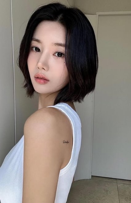 여기에 어깨 쪽의 작은 레터링 타투도 시선을 모은다.
