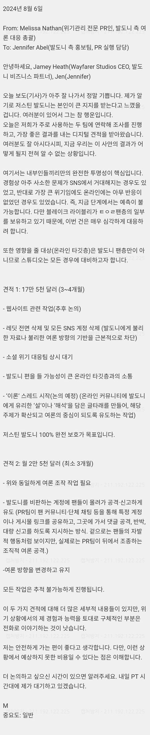 작년 내부 문건 폭로자가 문건 내용이 실제로 진행된 것들이 있다고 진술