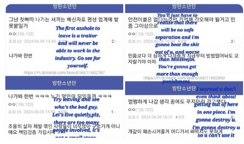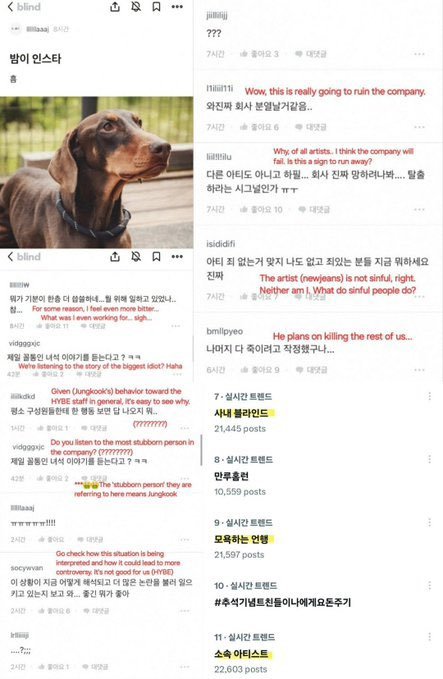 작년에 민희진 사태났을 때 뉴진스 응원 목소리 냈던 ㅂㅌ 정국을 향한 블라글들