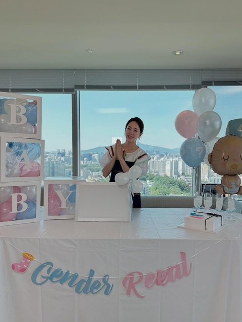 공개된 사진 속에는 박은영이 분홍색과 파란색 장식물에 둘러싸여 웃고 있는 모습. 앞서 박은영은 둘째의 성별이 딸이라고 밝힌 바, 젠더 리빌 파티에서의 행복한 미소가 눈길을 모은다.