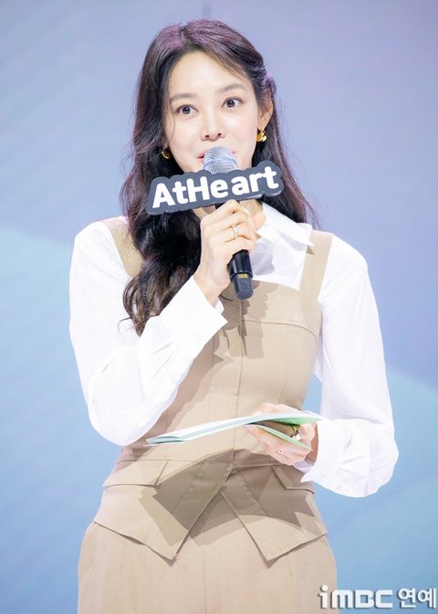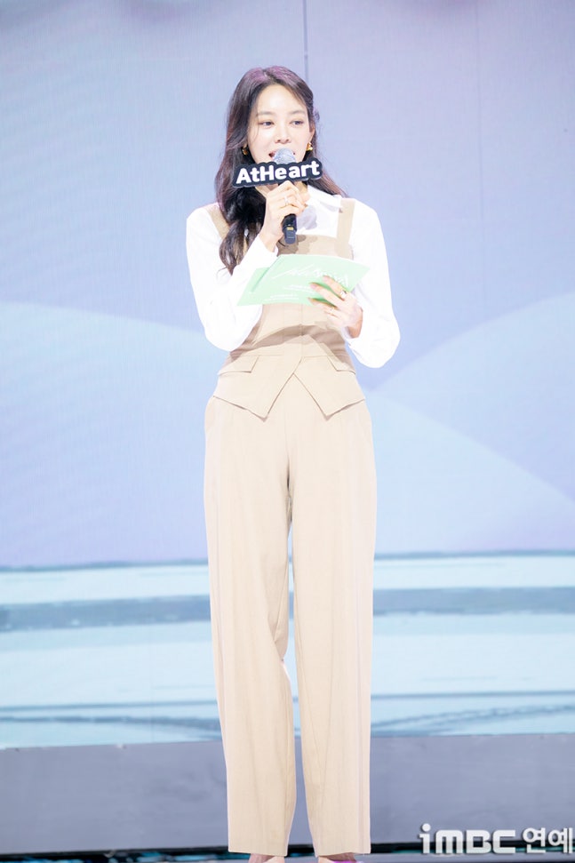 방송인 안현모가 13일 오후 서울 용산구 이태원로 블루스퀘어 SOL트래볼홀에서 열린 앳하트 첫 번째 EP ‘Plot Twist’ 발매 기념 데뷔 쇼케이스에 참석해 진행을 하고 있다.