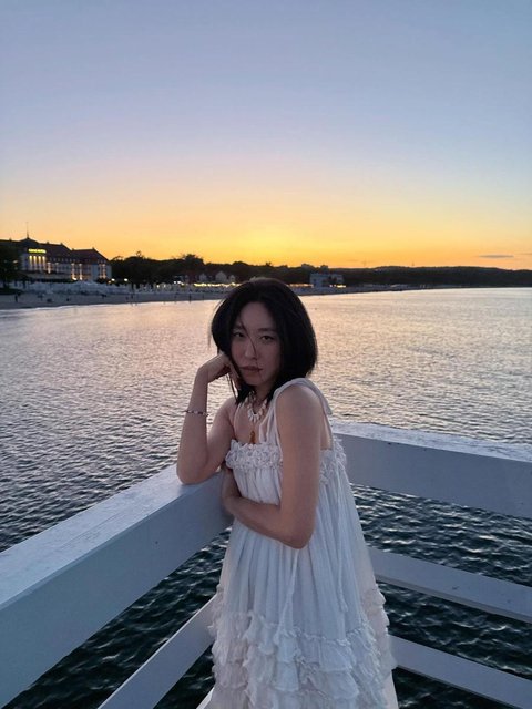 리아킴이 본인의 개인 SNS를 통해 근황을 전했다. 단정하게 어깨까지 내려오는 단발머리와 자연스럽게 흩날리는 앞머리는 여름 저녁 특유의 산뜻함을 더했다. 살짝 기댄 자세와 깊은 눈빛, 턱을 괸 손끝의 조형미가 섬세한 감정을 은유했다. 하얀 프릴 드레스를 입고, 청초하게 목걸이와 팔찌를 매치한 모습은 부드러운 해변의 감돔을 담아내듯 순수하고 우아했다. 잠잠한 바닷물과 부드럽게 물든 석양, 그리고 멀리 아련하게 자리한 유럽풍 건물들은 이국적인 풍경 속 리아킴만의 온도를 더했다.