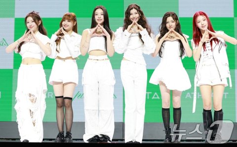 그룹 앳하트(AtHeart) 봄(왼쪽부터)과 케이틀린, 나현, 미치, 서현, 아린이 13일 서울 한남동 블루스퀘어에서 가진 첫 번째 EP 'Plot Twist' 쇼케이스에서 포즈를 취하고 있다. 2025.8.13/뉴스1 ⓒ News1 권현진 기자