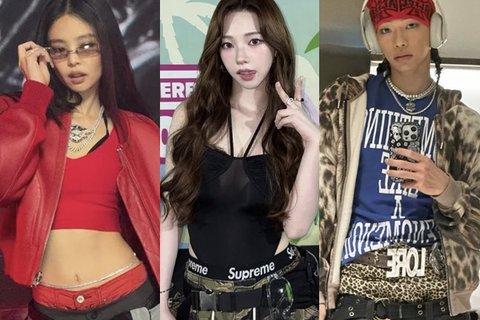 여기에 빨간색 짧은 상의와 가죽 재킷을 매치해 강렬한 분위기를 완성했다. 또 다른 무대에서는 헐렁한 카고 팬츠를 낮게 입고 속옷 밴드를 살짝 드러내는 패션도 선보였다. 짧은 재킷을 함께 입어 허리 라인을 강조했다.