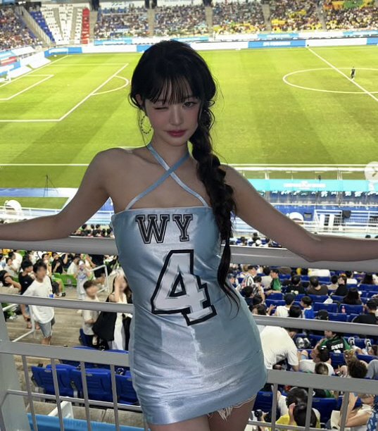 아이브는 지난달 30일 경기도 수원 월드컵경기장에서 열린 '2025 쿠팡플레이 시리즈' 팀K리그와 튜캐슬 유나이티드FC전에서 시축과 하프타임 공연을 했다.