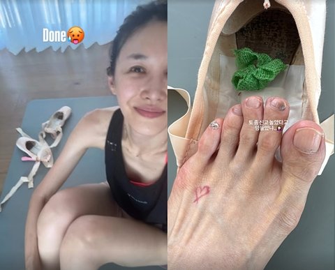 공개된 사진 속 윤혜진의 발톱은 보랏빛 멍이 든 모습이다. 그녀의 발에 새겨진 분홍색 타투가 시선을 모은다. 또 "Ballet after running! 해야지 머"라고 밝힌 윤혜진은 발레 동작을 취하고 있는 사진을 공개하기도 했다. 현역 발레리나 같은 완벽한 몸매가 감탄을 자아낸다.