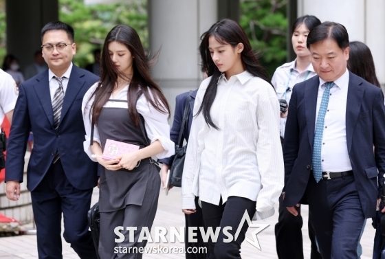 이날 오후 2시 조정기일을 앞두고 오후 1시 48분께 멤버 민지와 다니엘이 정장 차림으로 모습을 드러냈다. 두 사람은 별다른 언급 없이 변호인단과 건물 내부로 들어갔고 현장에는 세간의 관심을 입증하듯 다수의 취재진 등이 이들의 출석을 지켜봤다. 법정 앞에는 여러 경호 인력이 배치됐고 '출입제한구역'이라는 문구가 달린 바리케이드도 동원됐다.