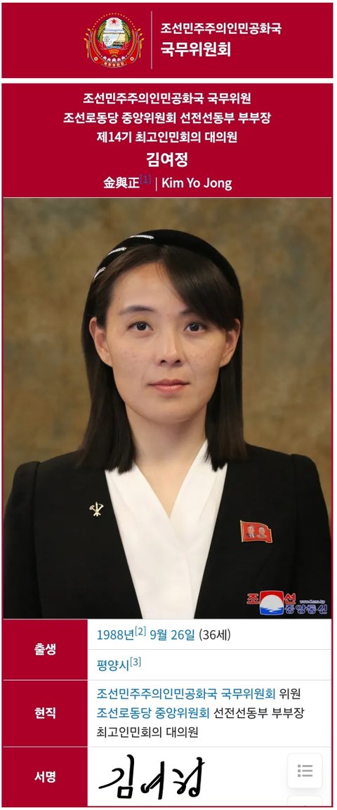 (사진2 설명) 김여정(金與正, Kim Yo Jong) 조선민주주의인민공화국 국무위원 <출처: NAVER 나무위키>
