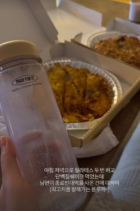 SBS 아나운서 출신 김다영이 결혼 생활 근황을 전했다.김 아나운서는 지난 14일 자신의 인스타그램 스토리에 "아침 저녁으로 필라테스 두 번 하고 단백질 쉐이크 먹었는데 남편이 종로 빈대떡을 사온 건에 대하여. (최고치를 향해가는 몸무게~)"라는 글과 함께 두 장의 사진을 순차적으로 게재했다.