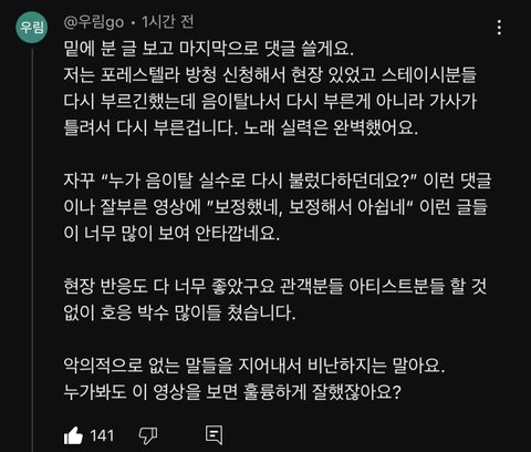 두번 부르고 두번다 방송처럼은 못불렀데 보정들어감 현장후기 떴음
