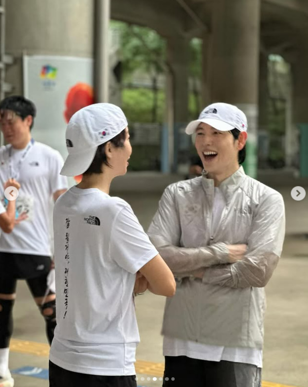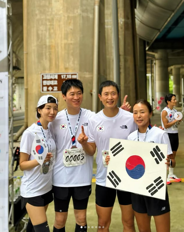 해당 마라톤은 광복 80주년을 맞이해 지누션의 션이 시작한 도전으로 이날 이른 오전부터 시작해 81.5km를 완주하는 코스다. 최근 연예계에도 러닝붐이 불고 있는 만큼 대다수의 연예인들이 참가하며 그 뜻을 함께 했다.