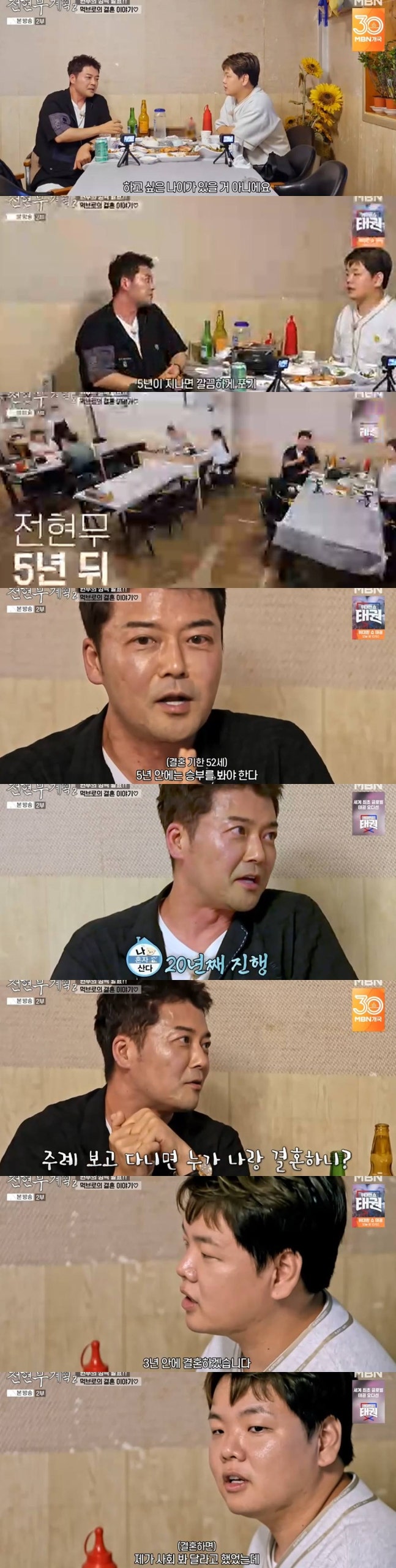 곽튜브는 최근 열애 중이라고 고백했는데, 이날 "저는 원래 빨리 결혼하는 게 목표였다"라고 말해 시선을 끌었다. 전현무는 "너는 빨리 결혼하지 않으면 나처럼 된다. '이왕 늦은 거 놀다 하지 뭐' 하면 훅 지나간다. 40대 중반으로 쭉. 걷잡을 수가 없다"라고 조언했다. 그러면서 "30대 중반에 (시기를) 잡아서 해야 한다"라고 말했다.