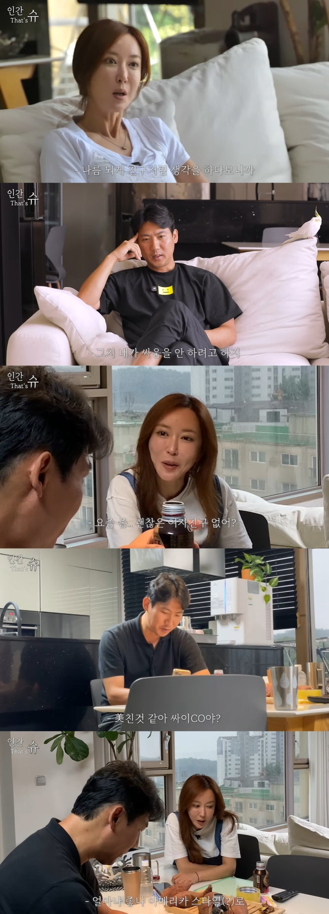 임효성과의 현실 부부 이야기도 눈길을 끌었다. 슈는 "부부라는 단어가 참 부담스럽다"라면서 임효성에게 "우리 부부라고 생각해?"라고 물었고 임효성은 "남이지. 남"이라고 강조했다. 또 두 사람은 "결혼 생활 만 4년, 친구 생활을 11년 했다"라고 입을 모았고, 슈는 "나름 친구처럼 생각하다 보니 싸우는 일이 거의 없다"라고 이야기했다. 하지만 임효성은 "그렇지. 네가 자꾸 싸움을 걸어도 내가 싸움을 안 하려고 한다"라며 의미심장하게 말을 이어갔다.그런가 하면 슈는 임효성에게 "요즘 좀 괜찮은 여자친구 없어?"라고 물었고 임효성은 "미친 거 같아. 사이코야?"라며 발끈했다. 슈는 "아니 물어볼 수 있는 거잖아. 얼마나 좋냐. 아메리카 스타일로"라며 멋쩍게 답했다.