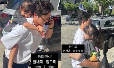영상 속에는 딸 유담 양을 업은 채 통화 중인 정준호의 모습이 담겨있다.