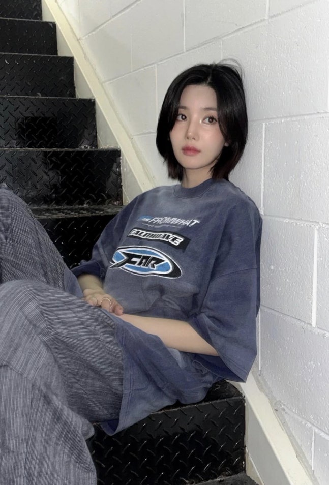 이어 또 다른 게시물에서는 파란색 하트 이모티콘과 함께 편안한 분위기의 사진을 게재했다. 루즈한 티셔츠와 팬츠 차림으로 계단에 앉아 먼 곳을 응시하는 듯한 여유로운 모습으로 색다른 매력을 전했다.