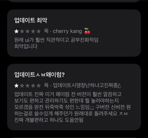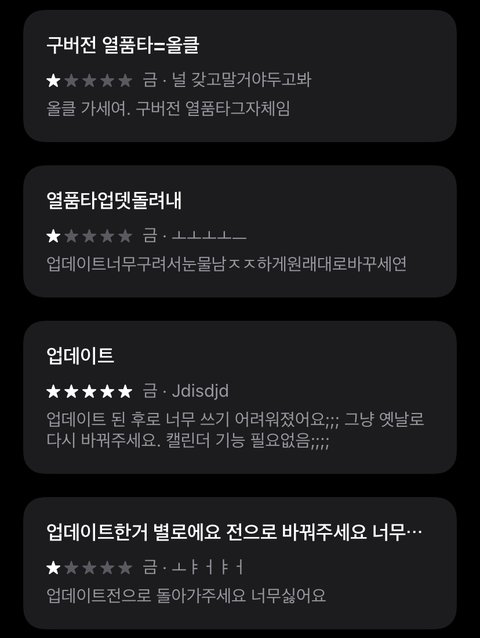 앱 운영자 남녀 각각 한명씩 2인이라는데… 심지어 업데이트 1년 준비했다는데 물론 그런 걸 떠나서 별로이긴한데 말하는뽄새가 너무 역함 나만그러냐?…