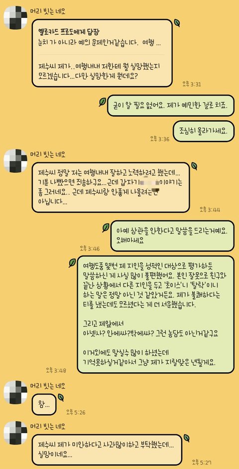 여행 끝나고 일요일에 만나 다시 사과할예정이라고 했음