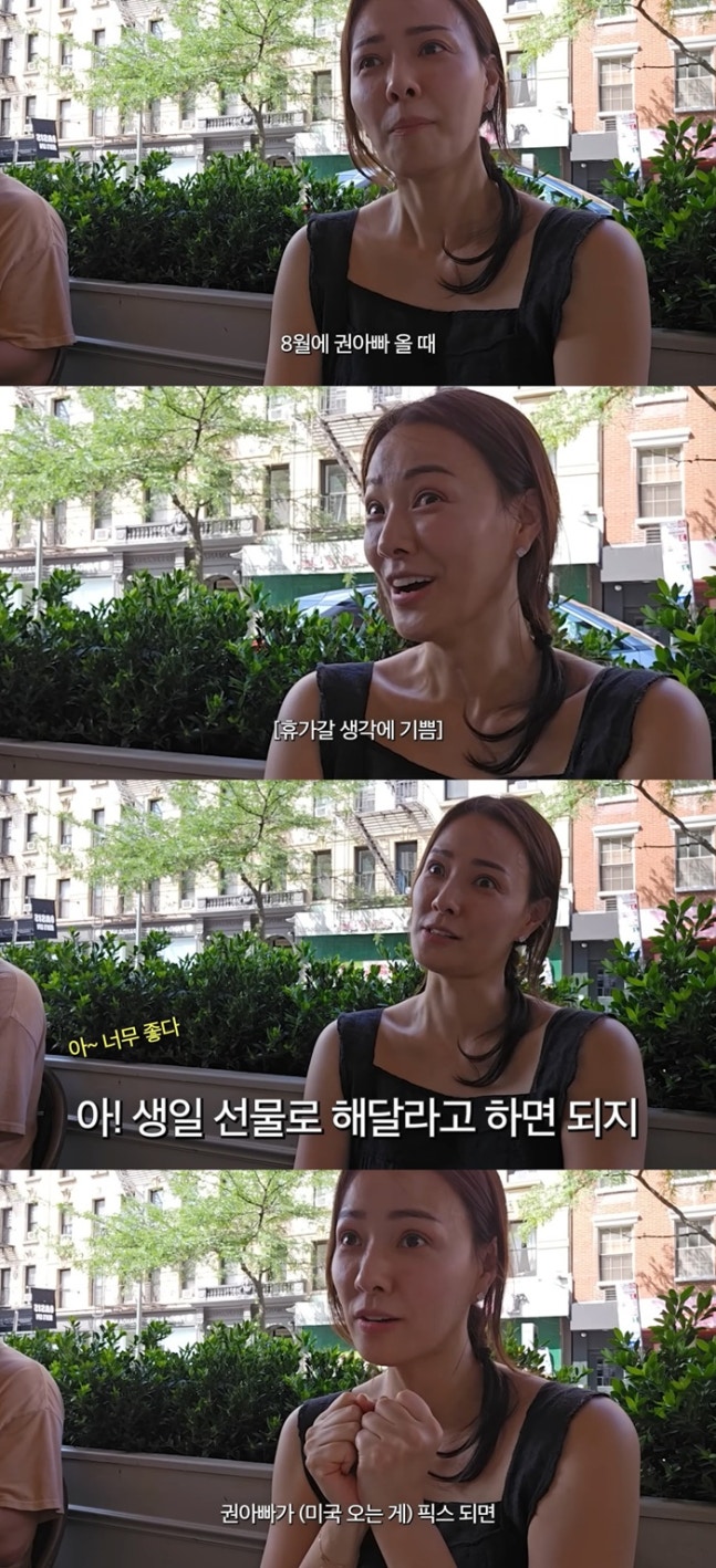 이어 손태영은 지인과 대화 중 해외 여행에 대한 꿈을 펼치며 "8월에 권아빠(권상우) 오면 우리 둘이 갈까"라고 제안했다.