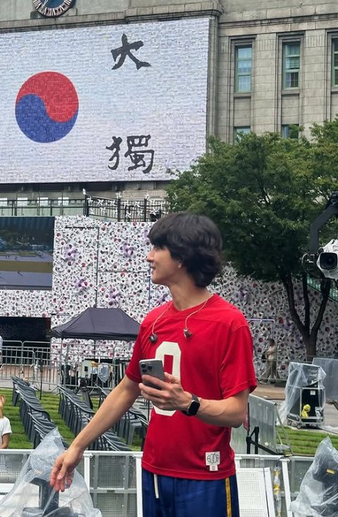 이와 함께 공개된 사진에는 최정훈이 태극기를 연상시키는 빨간색, 파란색 옷을 착용한 채 무대에 오른 모습이 담겨 있다.