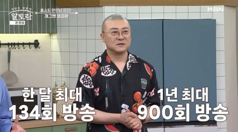 사진 = MBN '알토란'이에 이연복과 차유나는 염경환의 빈번한 방송 출연을 증언하며 "TV 채널을 돌리다 보면 거의 매번 나온다"고 말해 눈길을 끌었다. 이상민 또한 "1년에 900회 출연이라고 하면 100만 원만 받아도 9억이다"고 말해 놀라움을 안겼다.