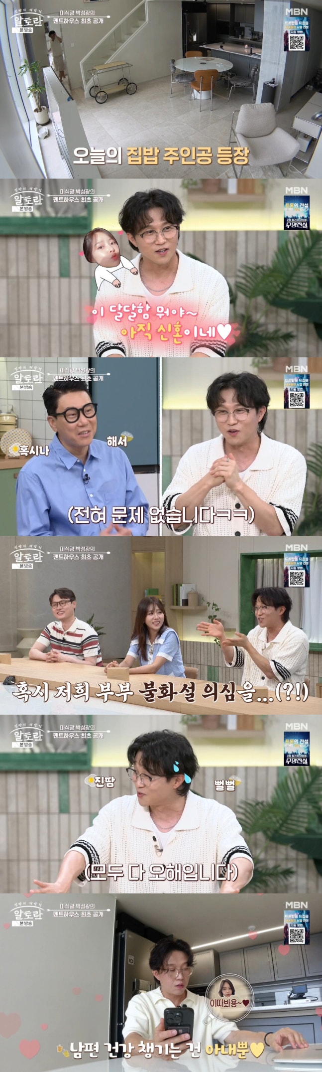 이에 박성광은 "붙어 산다. 서로 바빠서 얼굴을 잘 못 보는 거다. (아내가) 아침에 눈 뜨면 없다"고 답했다. 이상민은 "걱정 안 해도 되는 거냐"며 계속 물었고, 박성광은 "(불화설) 느낌이 있냐. 같이 지낸다. 얼굴 보기 쉽지 않은 것뿐"이라며 해명했다.실제로 박성광은 아내와 달달한 통화를 나누며 신혼부부 같은 느낌을 풍겨 다른 출연진들의 부러움을 사기도 했다.
