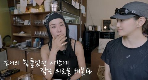 이날 이엘과 엄정화는 스스로를 위로하는 방법에 대해 공유하며 속 깊은 이야기를 나눴다. 이엘은 "나는 가끔 셀프 다독임을 해준다. 촬영 때문에 힘들었다? 그럼 밖에서 먹다 남은 김밥, 샌드위치 등을 먹으며 '힘들었는데 이런 거 먹게 해서 미안해'라고 한다"며 "'정작 나는 누가 돌봐?'라는 게 크게 왔었다. 혼자 막 울면서 시작이 됐다"라고 털어놨다.