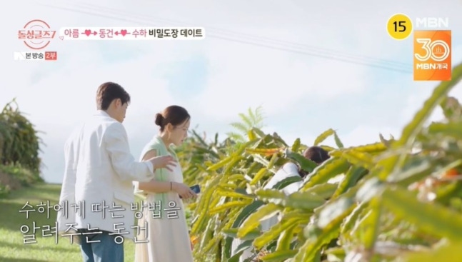 이어 과일 농장에서 용과를 따려는 세 사람. 이동건은 장수하에겐 용과를 따는 방법을 말로 설명해 주었지만, 조아름이 할 땐 직접 나섰다. MC들은 "아름 님한테 하는 건 다르다"라고 입을 모았다. 그러나 장수하는 "동건 씨가 나한테 자주 안 오는 게 '내가 더 좋아서 그러나?' 싶었다. 나와 비슷하다고 느꼈다"라고 생각했다. 이후 장수하는 이동건에게 "오늘 일부러 더 표현한 것도 있다"라며 마음을 고백했다.