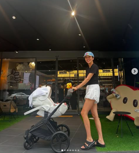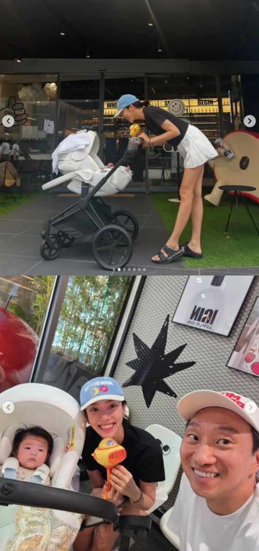 사진 속 손담비는 짧은 반바지에 반팔티, 모자를 착용한 채 유모차를 끌고 있는 모습이 담겼다. 아이와 눈맞춤을 하고, 남편 이규혁과 함께 가족 셀카를 찍는 등 화목한 일상을 보내고 있다.